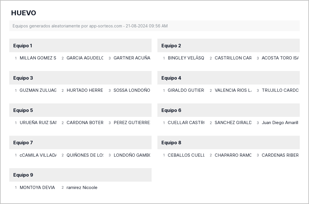 hola muchchos, para la clase de este lunes 26 de agosto deberan llevar a cklase un huevo. cada grupo YA CONFORMADO. llevara UNO unicamente.
