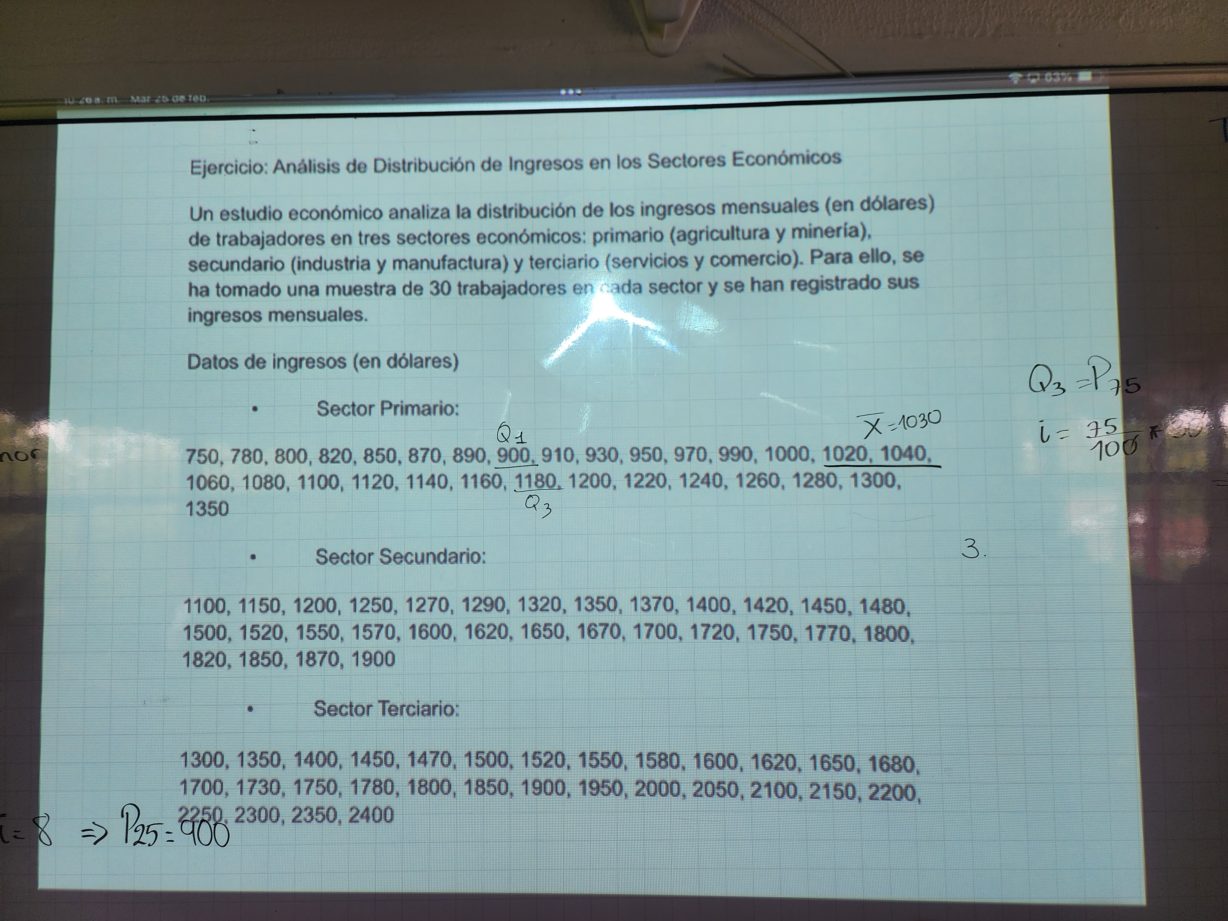 Buen día. Adjunto el enunciado para la tarea que se inició en clase. Realizar el diagrama de cajas y bigotes de los tres sectores para el próximo jueves