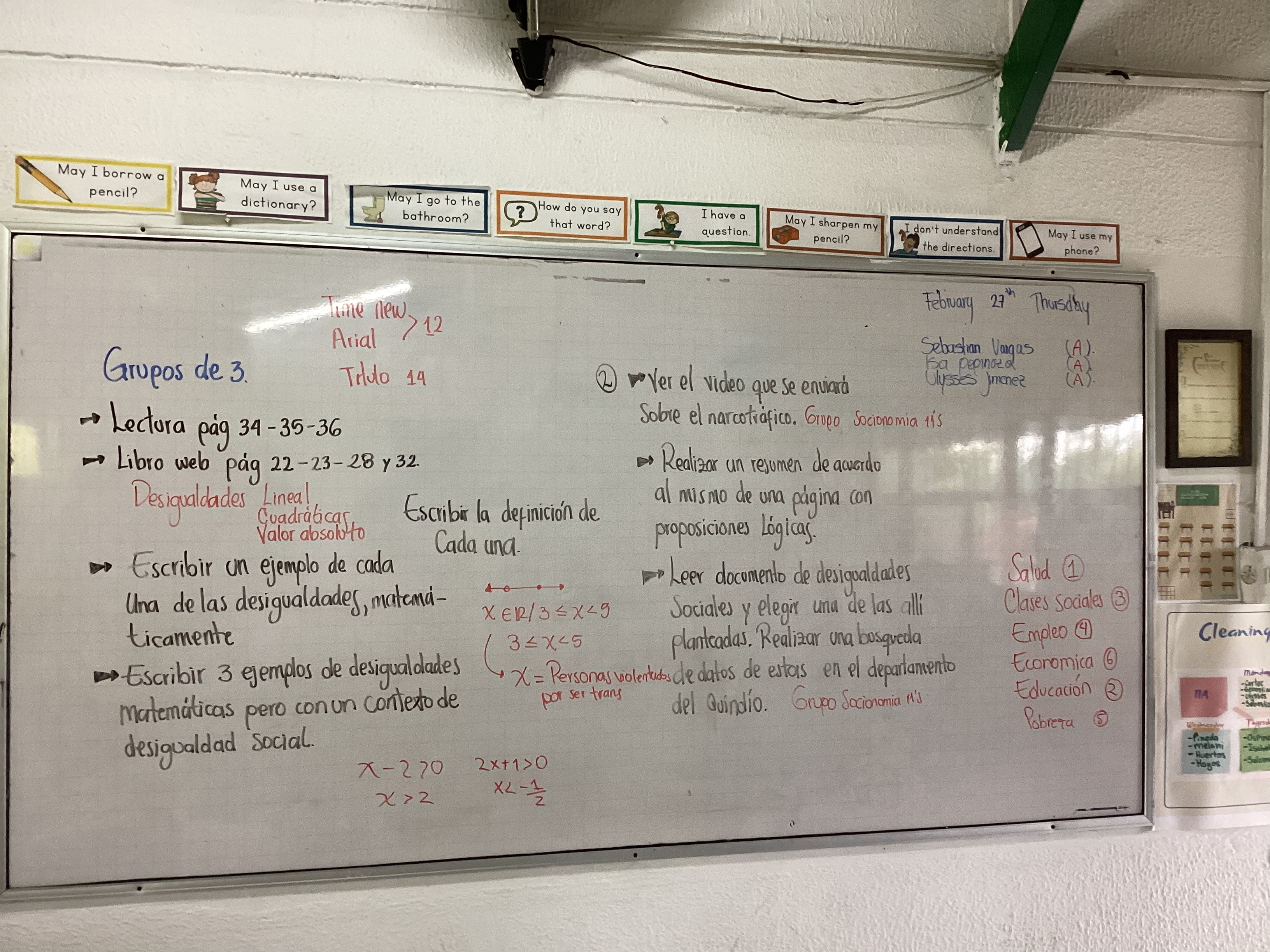 Dadas las últimas situaciones ocurridas con el grado 11A, no podrán utilizar los dispositivos para sus avances del proyecto, por ende, solicito a cada grupo estar pendientes del material que por este medio se va a compartir para imprimirlo y usarlo en las clases.