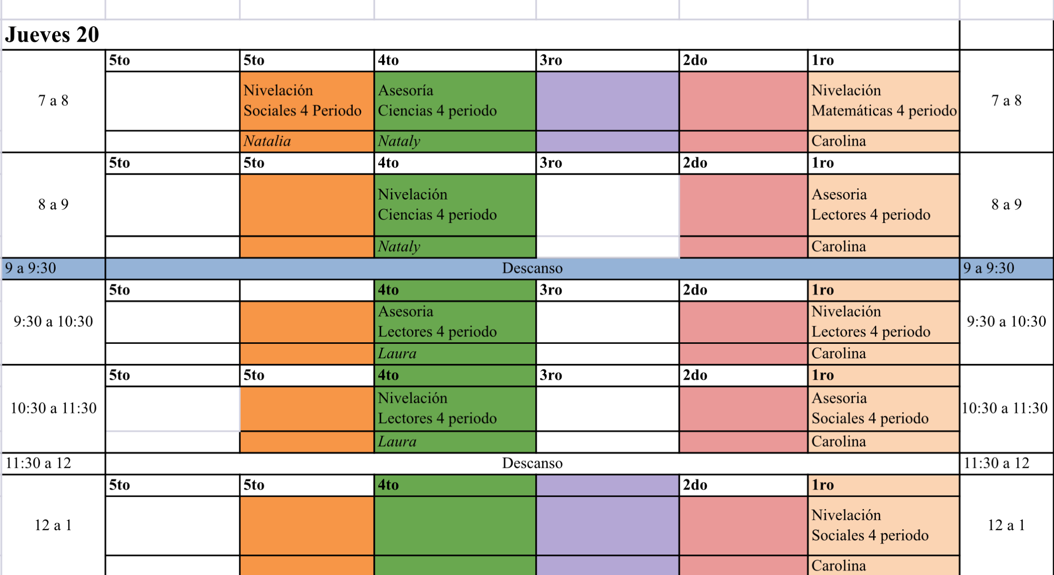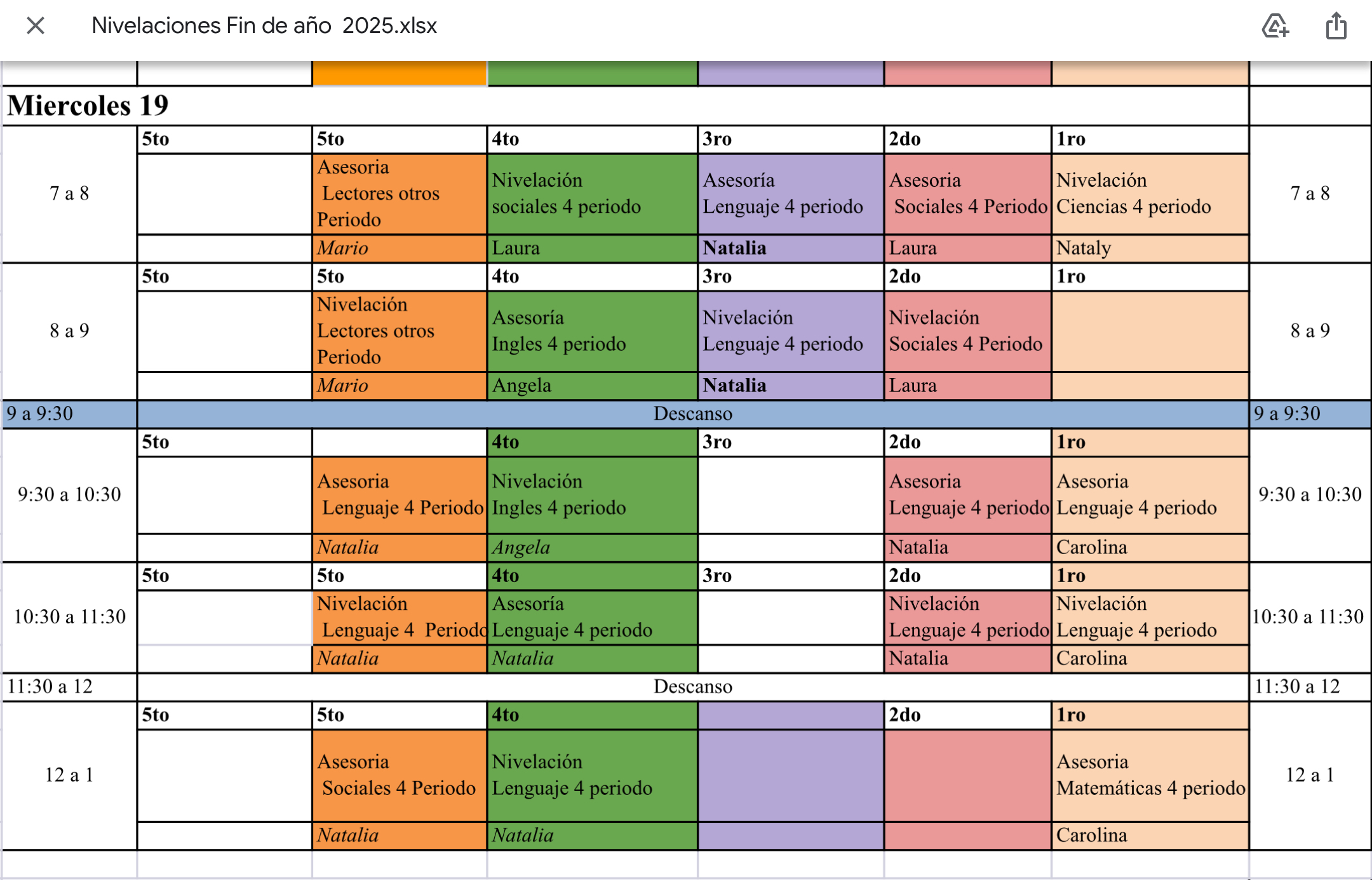 A continuación encontrarán los horarios por día, para las nivelaciones de final de año
