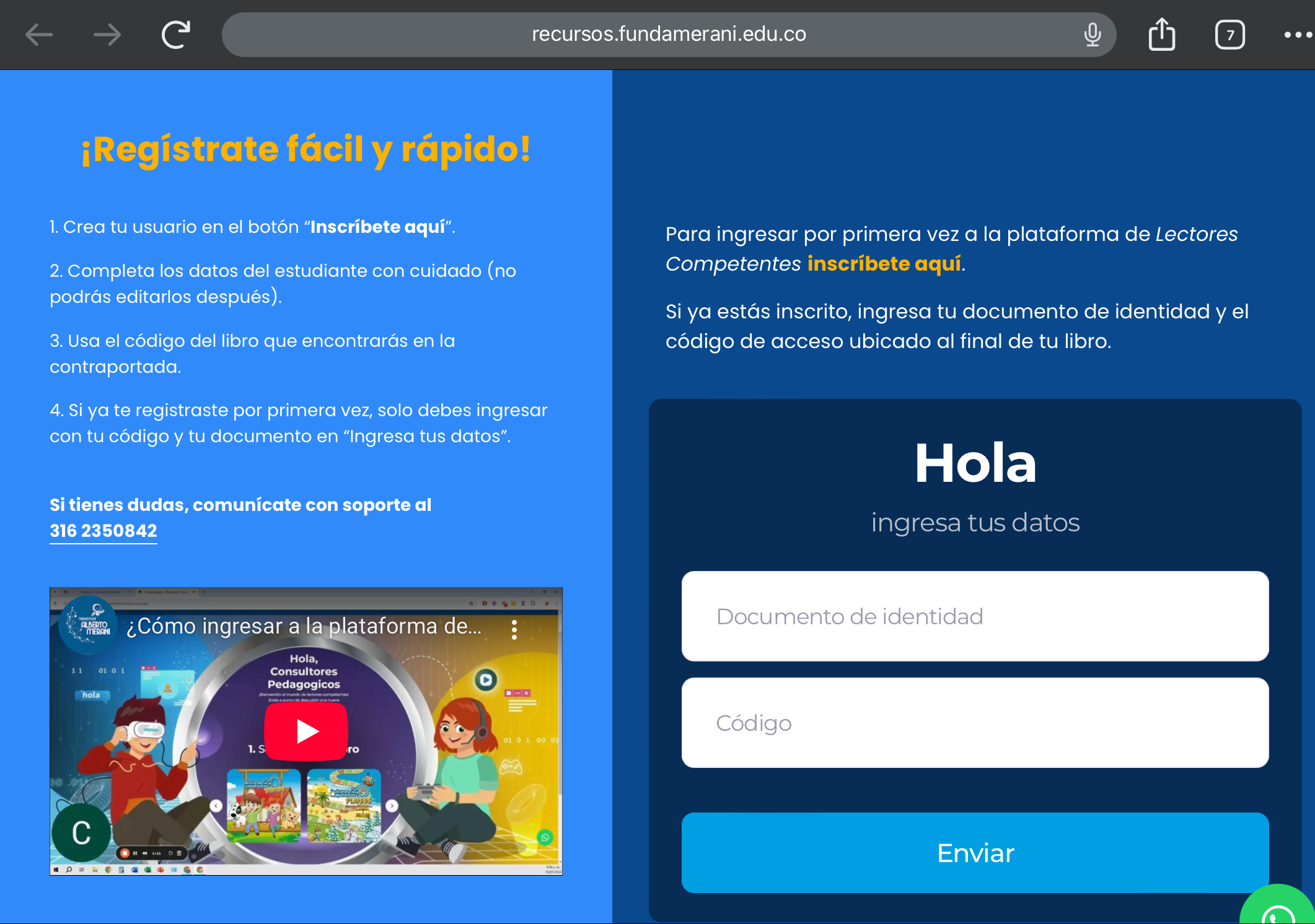 ahí se hace la inscripción, donde deben tener el libro a la mano pues necesitan el nombre del libro y el CÓDIGO (aparece en la pasta dura del libro).
