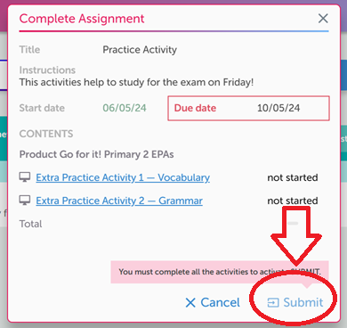 y despues de haber realizado las actividades, no olvidemos subir la actividad SUBMIT