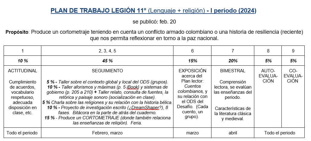 Adjunto el plan de trabajo con el cual se evaluarán las enseñanzas adquiridas durante este 1er periodo. Recomiendo mucha responsabilidad, honestidad y compromiso, muchos éxitos.