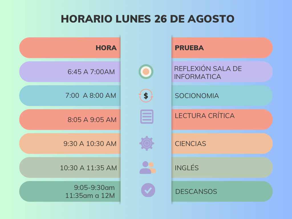 Cordial saludo, les envío el horario de bimestrales. Lunes 26 de Agosto.