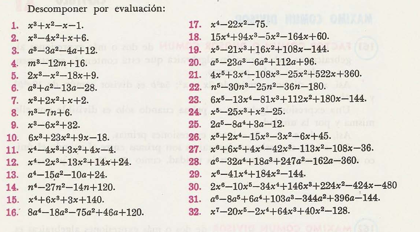 Deben escoger y factorizar 10 de los siguientes ejercicios por medio del último caso de factorización visto: división sintética. Deben factorizar hasta su mínima expresión, es decir, deben aplicar la división sintética las veces que sea necesario en cada ejercicio. También adjunto la última evaluación realizada para que la corrijan y estudien.