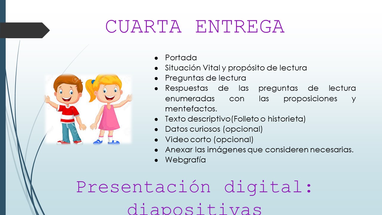 A medida que vayan completando esta última entrega, cada estudiante podrá realizar su exposición en el salón de clase. Si lo prefieren, tienen la opción de presentar un video, de manera que no sea necesario exponer de manera presencial.