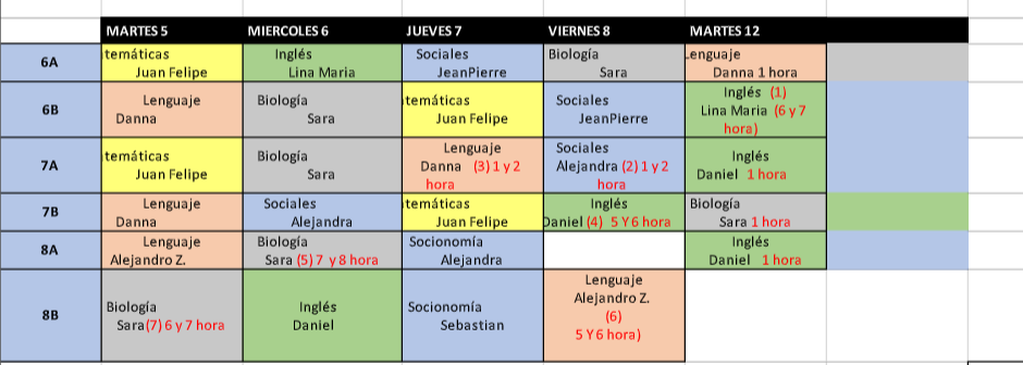 Buen día estudiantes. Adjunto el horario para los exámenes bimestrales de este periodo. Por favor revisar muy bien y prepararse para los exámenes finales.