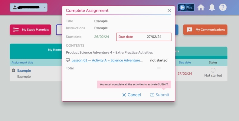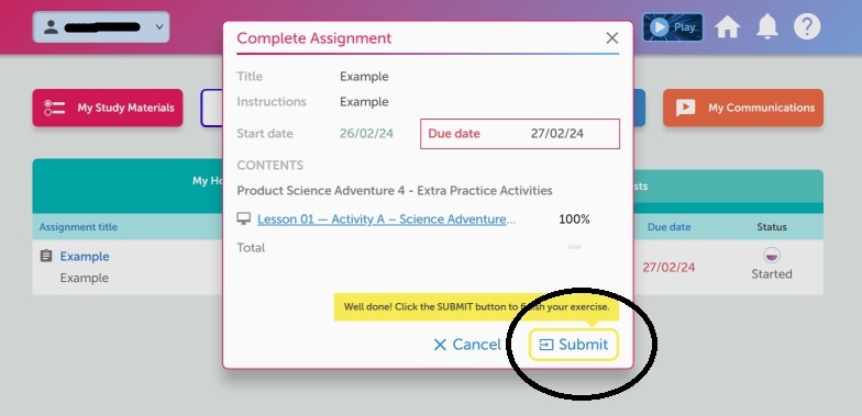 Paso 7: nos deben aparecer todas las actividades completadas para poder subirlas. Si todas nos estan completas la opcion no se activa SUBMIT