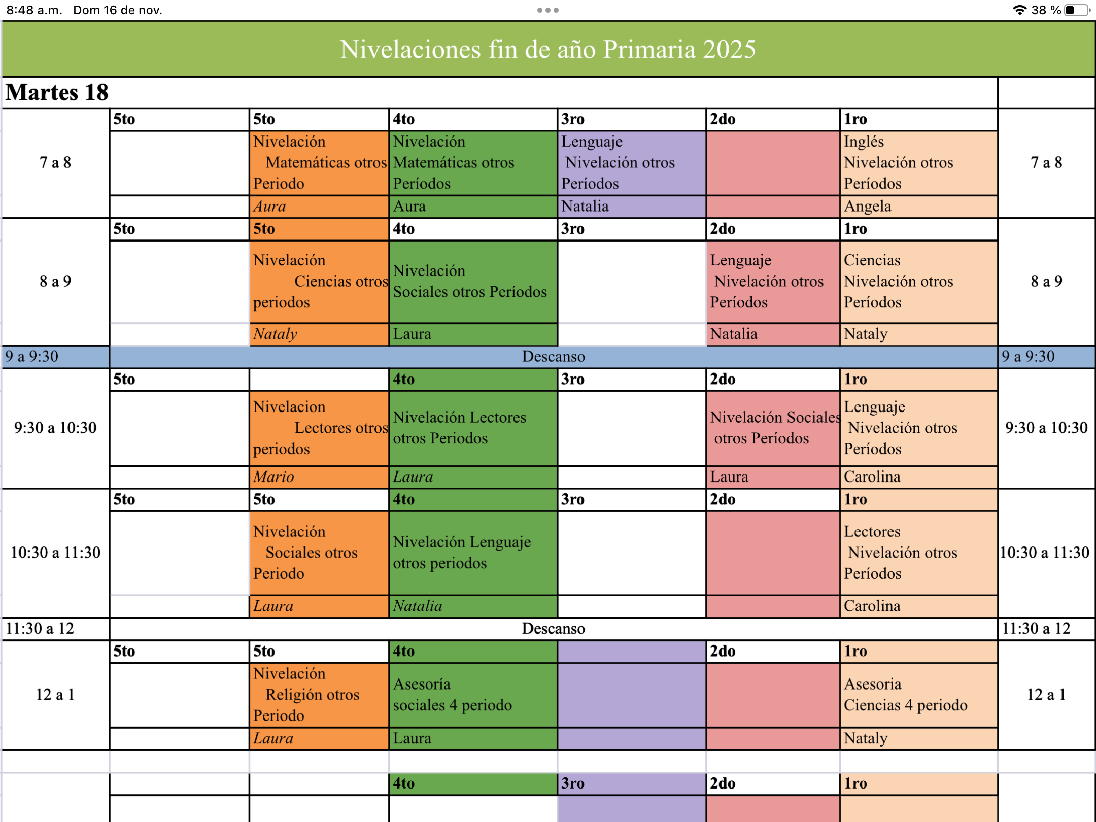 A continuación encontrarán los horarios por día, para las nivelaciones de final de año